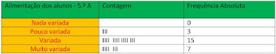 Opinião dos alunos do 5º A sobre a alimentação na escolaTabela de frequências